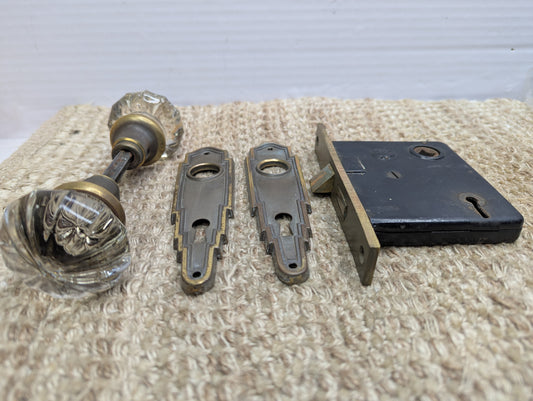 Antique Interior Mortise Lock #0290, Glass Door Knobs & Brass Door Knob Plates