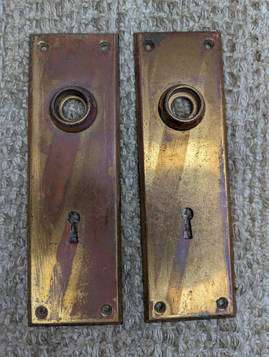 Pair of 2" x 5 1/2" Antique Stamped Brass Door Knob Plate Hardware