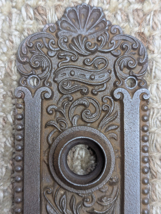 Antique Reading Co. Exterior Ornate Cast Iron Door Knob Plate Hardware