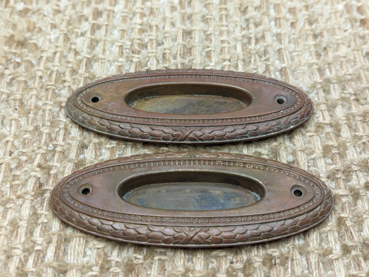 Pair Of Antique Decorative Stamped Brass Recessed Window Sash Lift Pull Hardware
