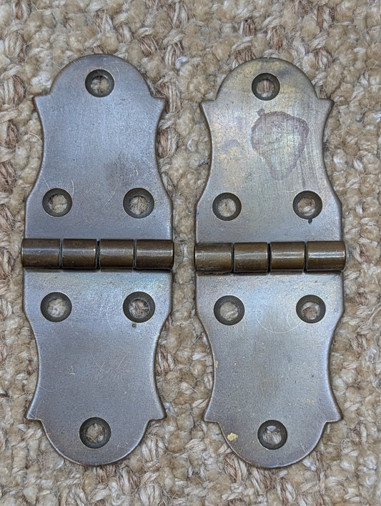 Pair Of 1" x 3 3/4" Antique Steel Cabinet Door Hinges