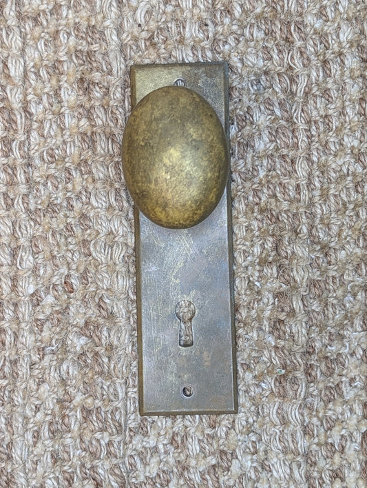 Antique Cast Brass Oval Door Knob and Cast Brass Door Plate