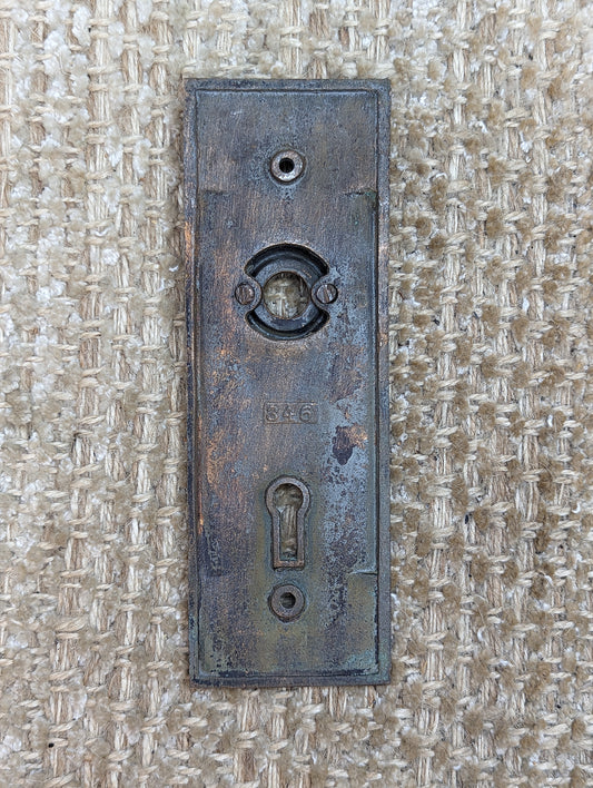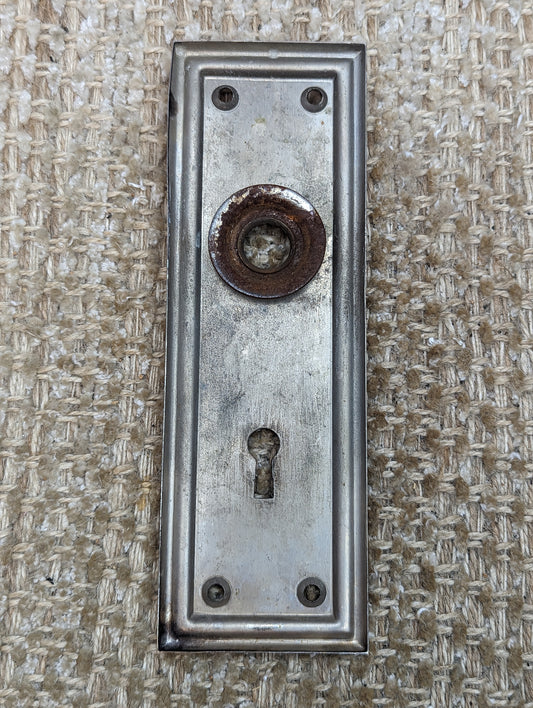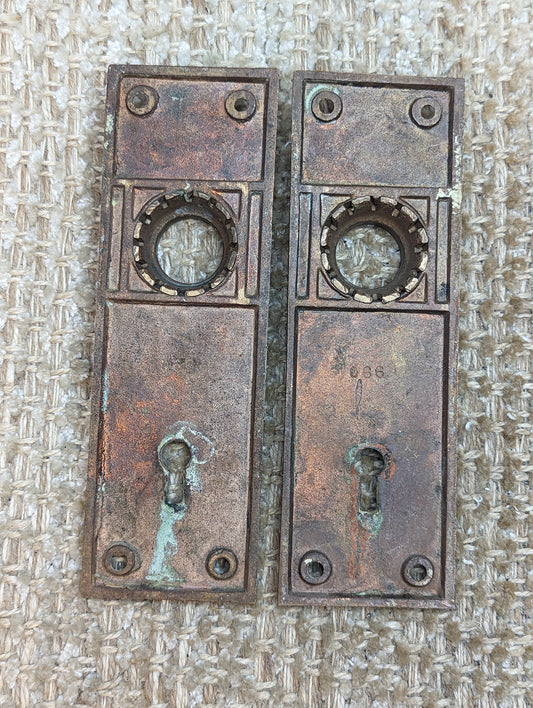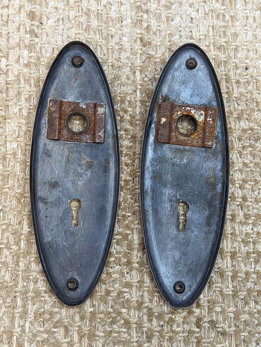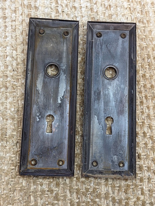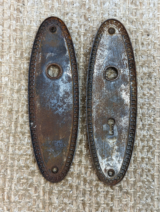 1 9/16" x 3 11/16" Pair Of Antique Stamped Steel Door Knob Plate Hardware