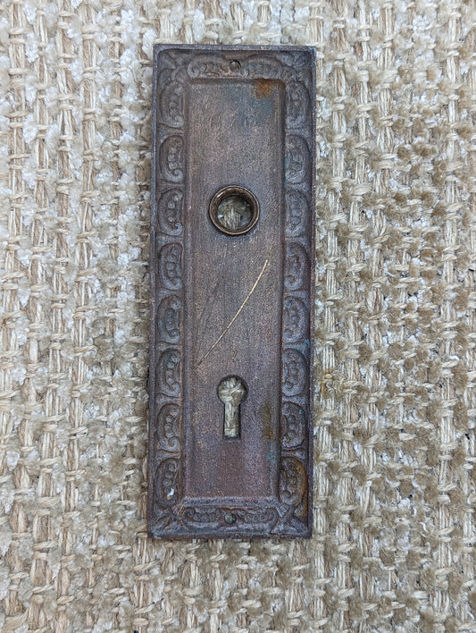 1 3/4" x 5 5/8" Antique Stamped Steel Door Knob Plate