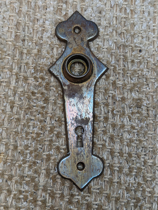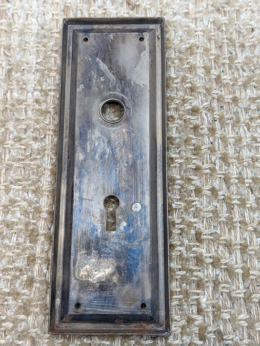 2 7/16" x 7 1/8" Antique Stamped Steel Door Knob Plate