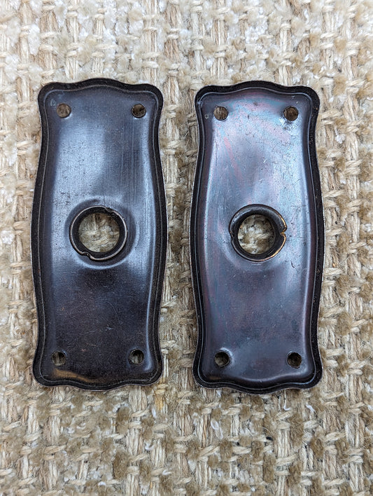 2 1/4" x 7 3/8" Pair Of Antique Stamped Steel Door Knob Plates