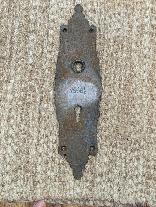 2 3/8" x 8 3/4" Antique Cast Iron Door Knob Plate Hardware #7858 1/2