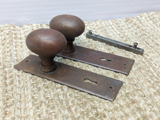 Antique Interior Mortise Lock, Steel Door Knobs, Knob Plates & Strike Plate W/Key