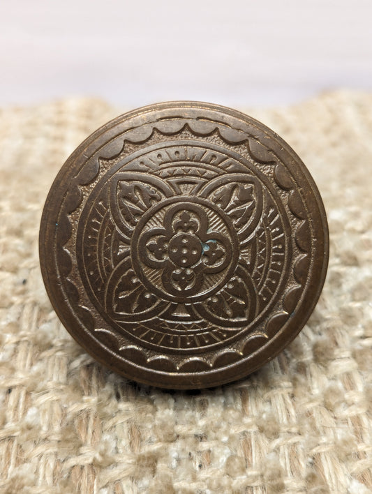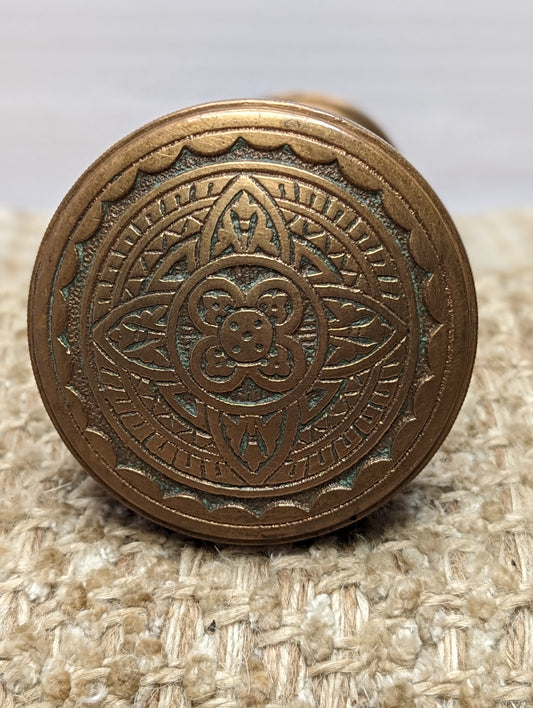 2 1/4" Antique Corbin Como Decorative Stamped Brass Door Knob Circa 1905