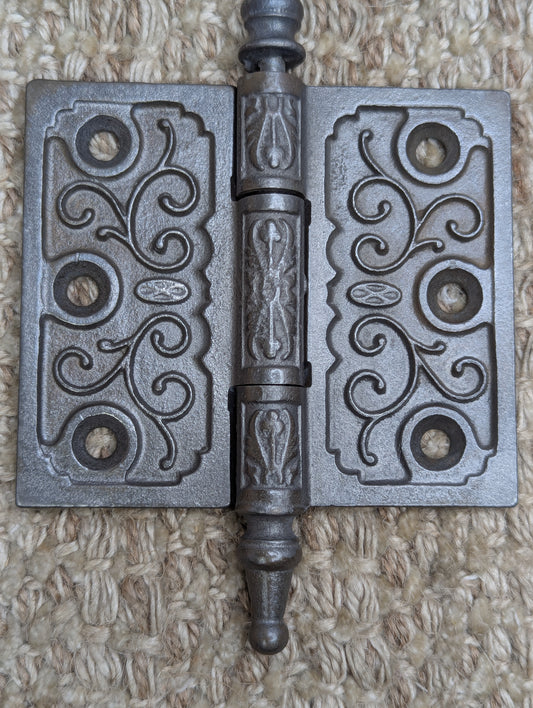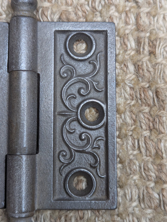 3 1/2" x 3 1/2" Antique Ornate Cast Iron Steeple Hinge