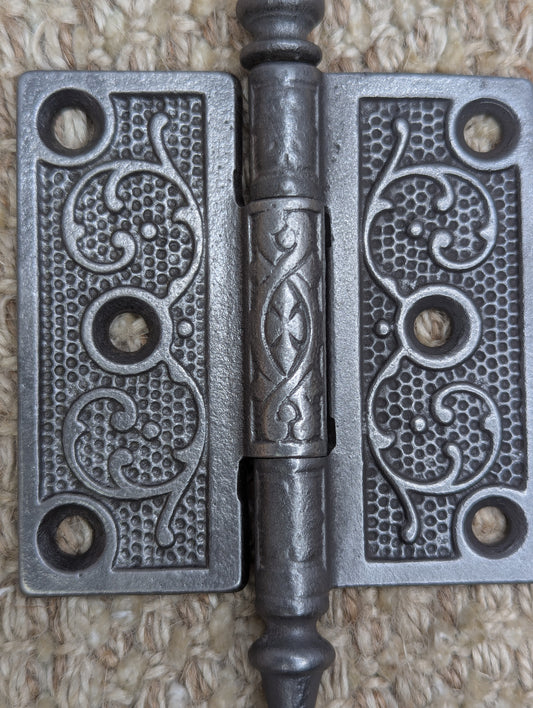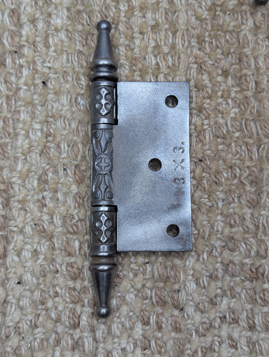 3 1/2" x 3 1/2" Antique Ornate Cast Iron Steeple Tip Hinge Door Hardware