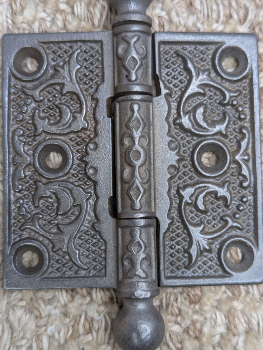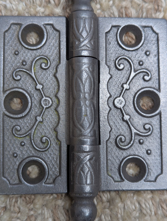 3" x 3" Antique Ornate Cast Iron Ball Tip Hinge