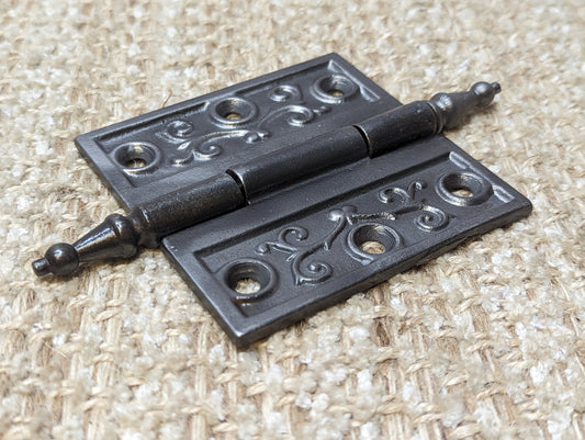 3" x 3 1/2" Antique Ornate Cast Iron Steeple Hinge