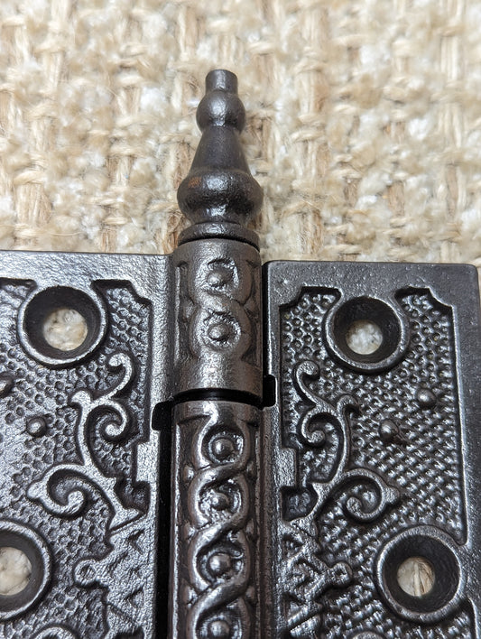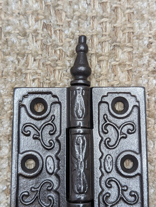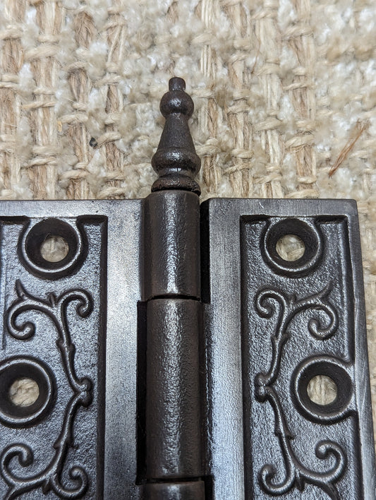 4 1/2" x 4" Antique Ornate Cast Iron Steeple Hinge