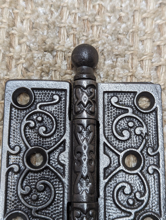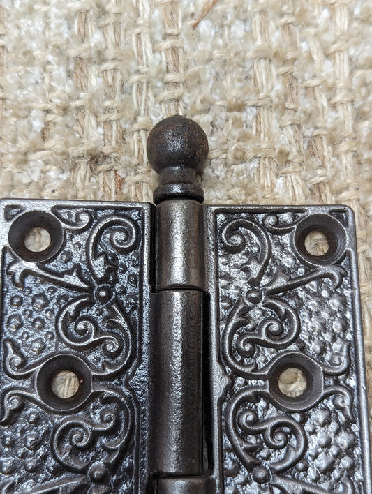 3" x 3" Antique Ornate Cast Iron Ball Tip Hinge