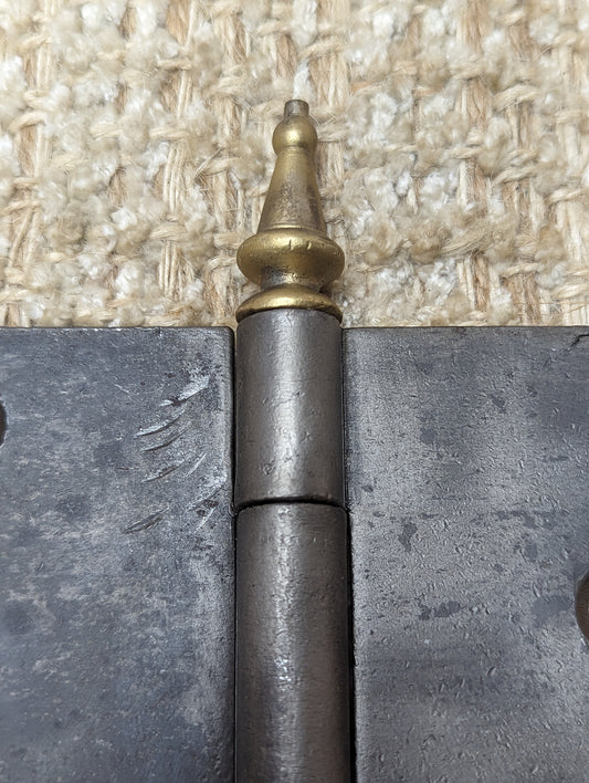 4 5/8" x 3 13/16" Antique Cast Iron With Brass Steeple Tip Hinge
