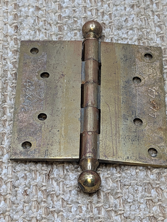 4 1/2" x 4 1/2" Antique Brass Ball Tip Hinge