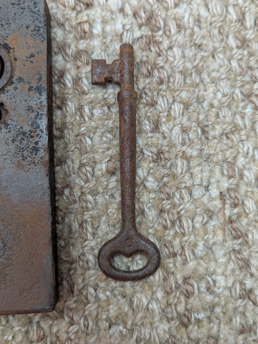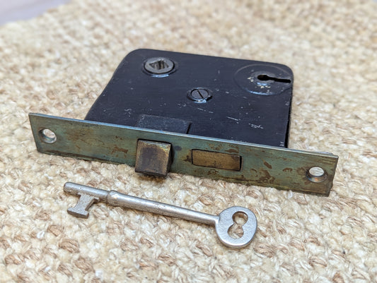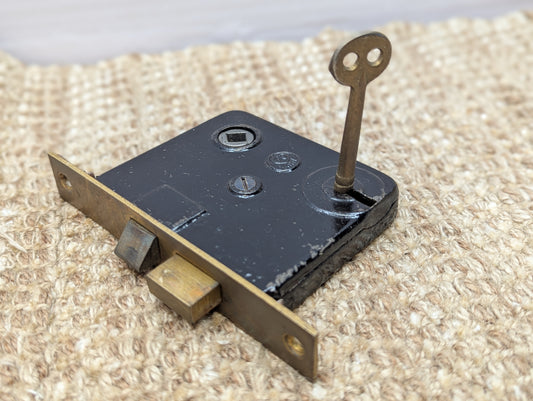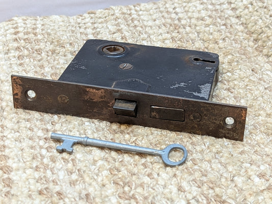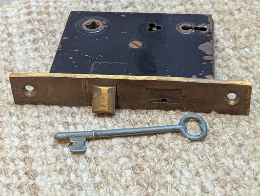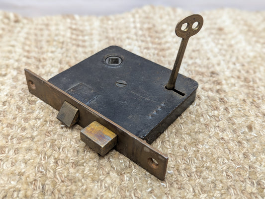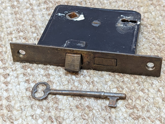 Antique Interior Mortise Lock Door Hardware Lid #20 With Key