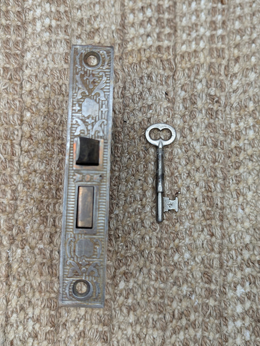 Antique RECo Interior Mortise Lock Door Hardware #1304 Pat Aug 5 1879 With Key