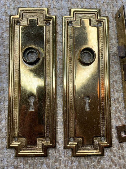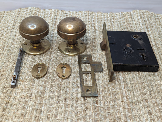 Antique Interior Mortise Lock #2, Brass Door Knobs & Door Knob Plates Set