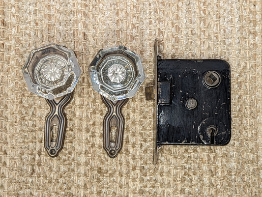 Antique Interior Mortise Lock, Glass Door Knobs & Steel Door Knob Plates
