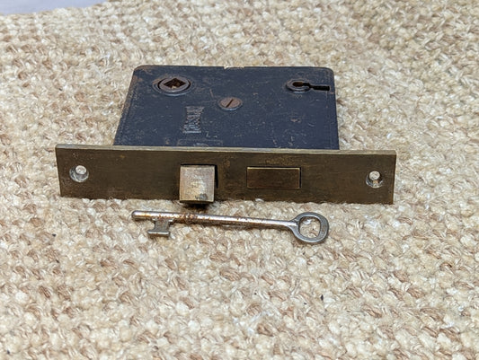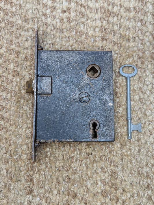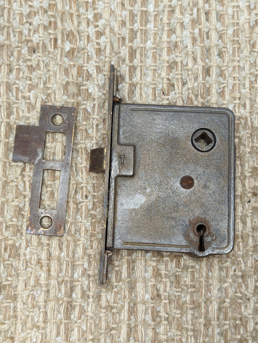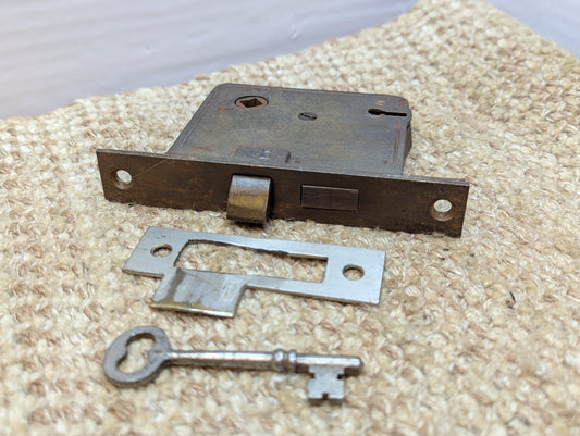 Antique Interior Mortise Lock, Steel Door Knobs, Knob Plates & Strike Plate W/Key
