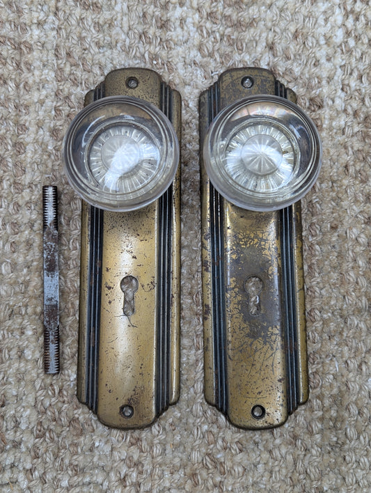 Antique Russwin Interior Mortise Lock #0389, Glass Door Knobs & Brass Door Knob Plates With Key