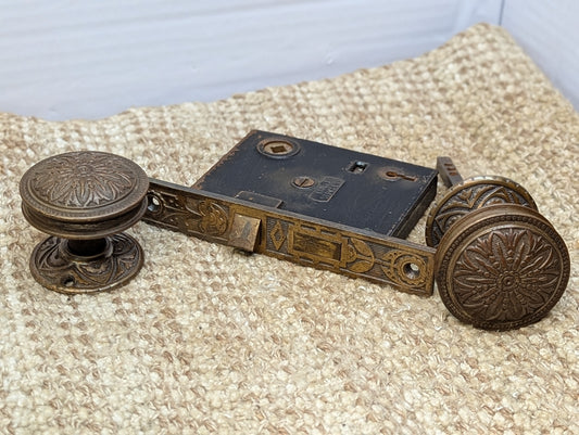 Antique Hopkins & Dickson Mfg. Co Lock #225, Bronze Door Knobs and Rosettes Circa 1879