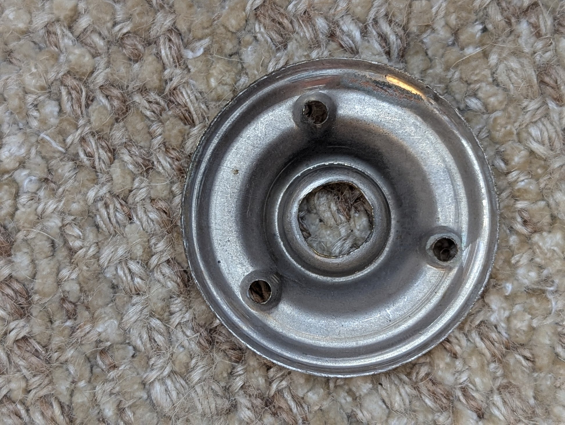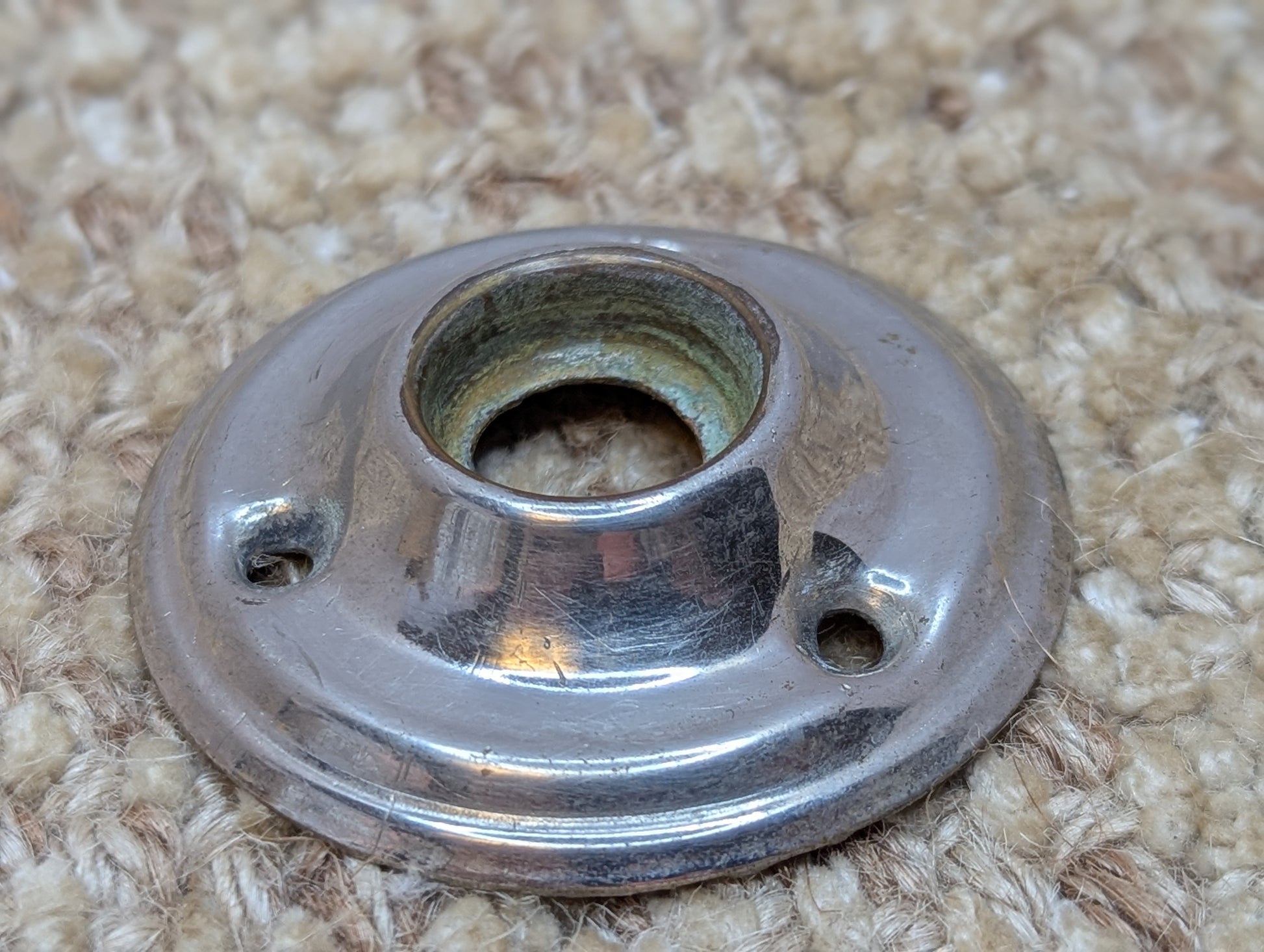 I have cleaned the paint off of this hardware and lightly buffed. It is in good condition for the age. Please see pictures.