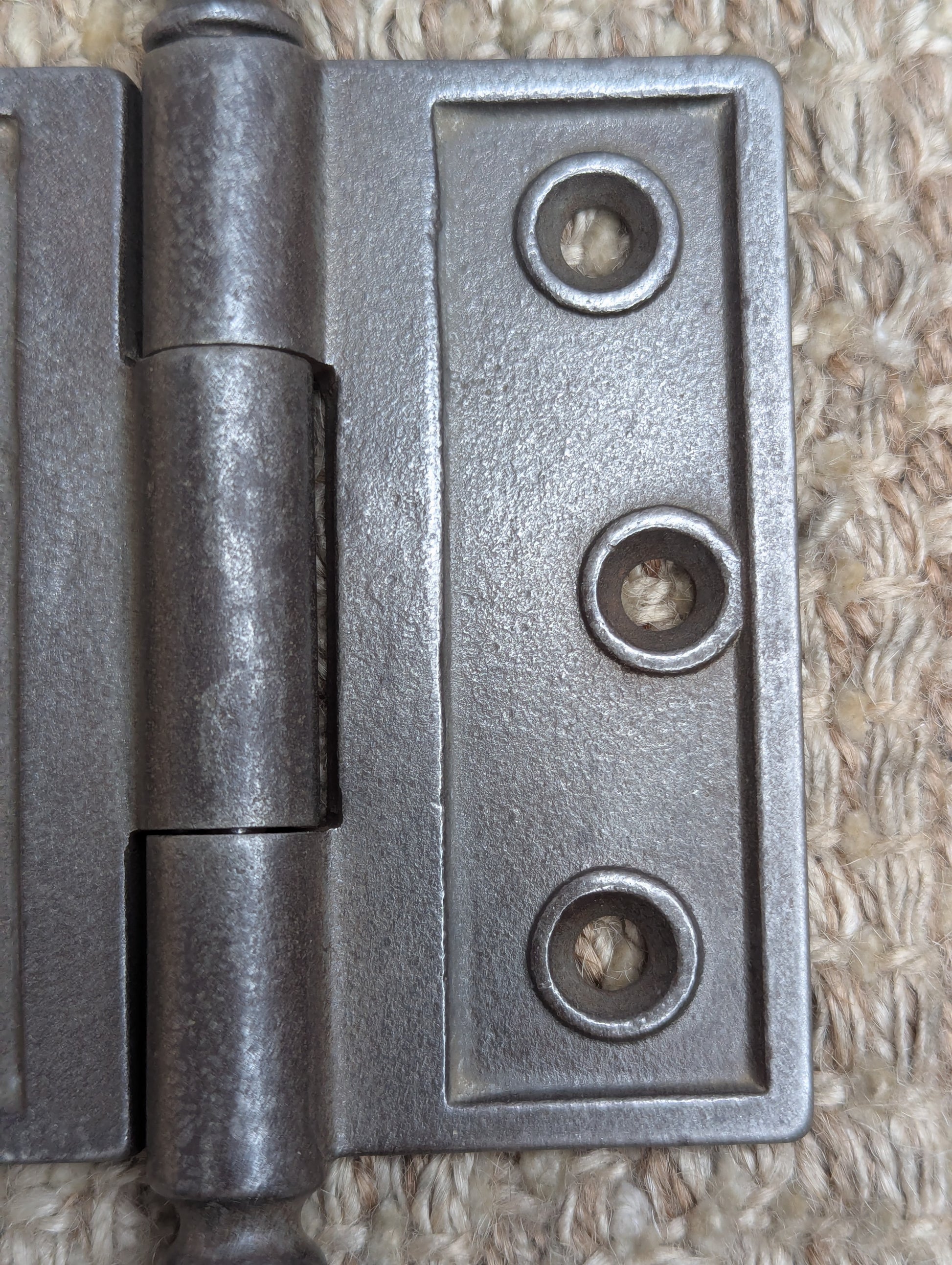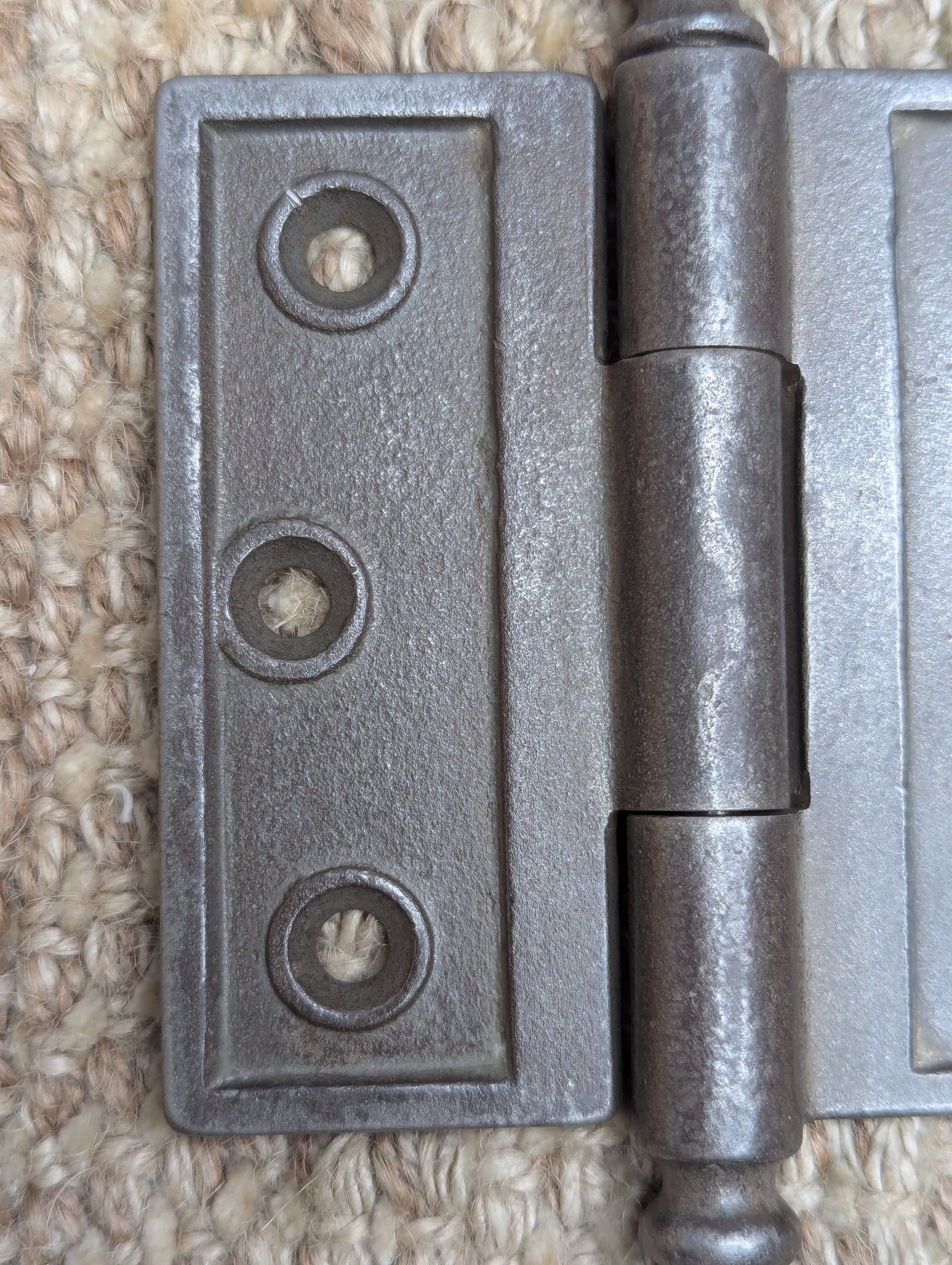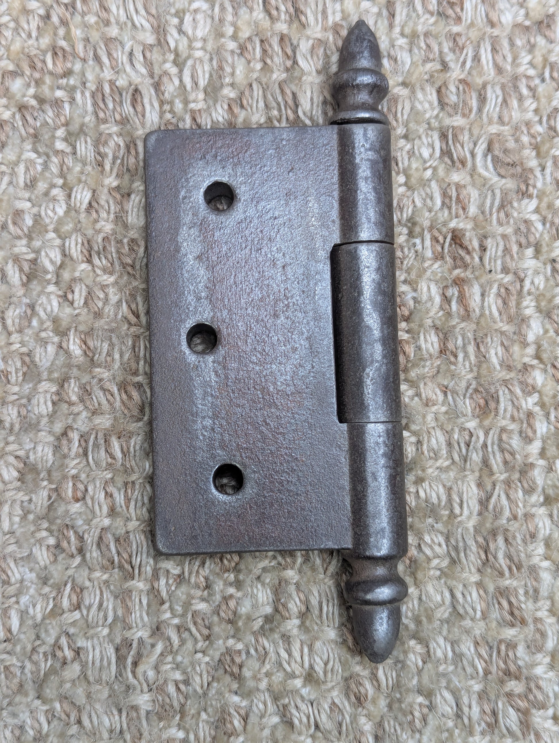 This listing is for one single hinge, not a pair of hinges. This is an original antique acorn tip hinge, not a reproduction. The paint has been cleaned off and the front of the hinge has been lightly buffed. There are no cracks in this hinge. All antique hardware ages differently. If you would like more pictures or have any questions about the hardware please message me. Please see pictures for conditions.