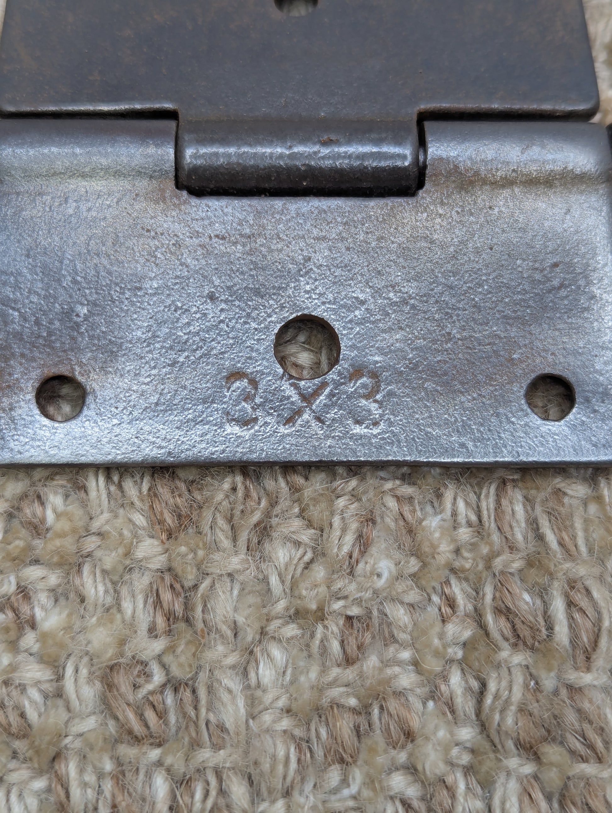 This listing is for one single hinge, not a pair of hinges. This is an original antique steeple tip hinge, not a reproduction. The paint has been cleaned off, most of the rust removed, the hinge has been lightly buffed. There are no cracks in this hinge. If you would like more pictures or have any questions about the hardware please message me. Please see pictures for condition.